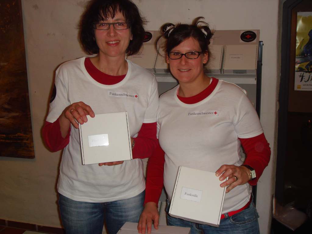 Zur Eröffnung treten die beiden Künstlerinnen Susanne Krämer und Karin Ringholz-Rank als Funkenschwestern auf und bieten Nothelfer in einem Set an. Die präsentierten Nothelfer sind limitierte Schachteln mit unterschiedlichen Titeln und Inhalten. Zugeschnitten auf einzelne Gemütszustände und deren Erfordernisse, finden sie im Alltag Anwendung. Die RezipientInnen sind nicht lediglich BetrachterInnen. Sie können die Nothelfer erwerben und mit nach Hause nehmen, den Inhalt be-greifen und im spielerischen Umgang ausprobieren.
