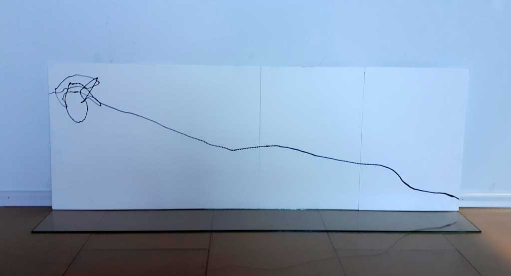 Objekt | Zeichnung, Lack auf Passepartoutkarton, auf Glas stehend41,5 x 117 x 20 cm